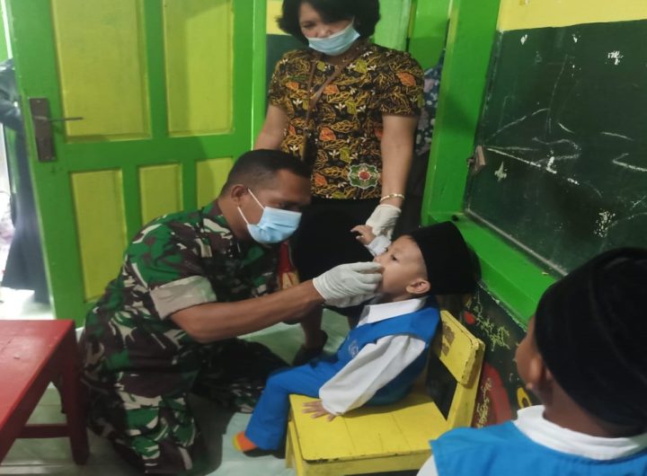 Blitar.- Evav-Terkini.Com Sebagai wujud kepedulian terhadap kesehatan anak, Serda Harno Babinsa Koramil 0808/18 Panggungrejo turut mendampingi Bidan...