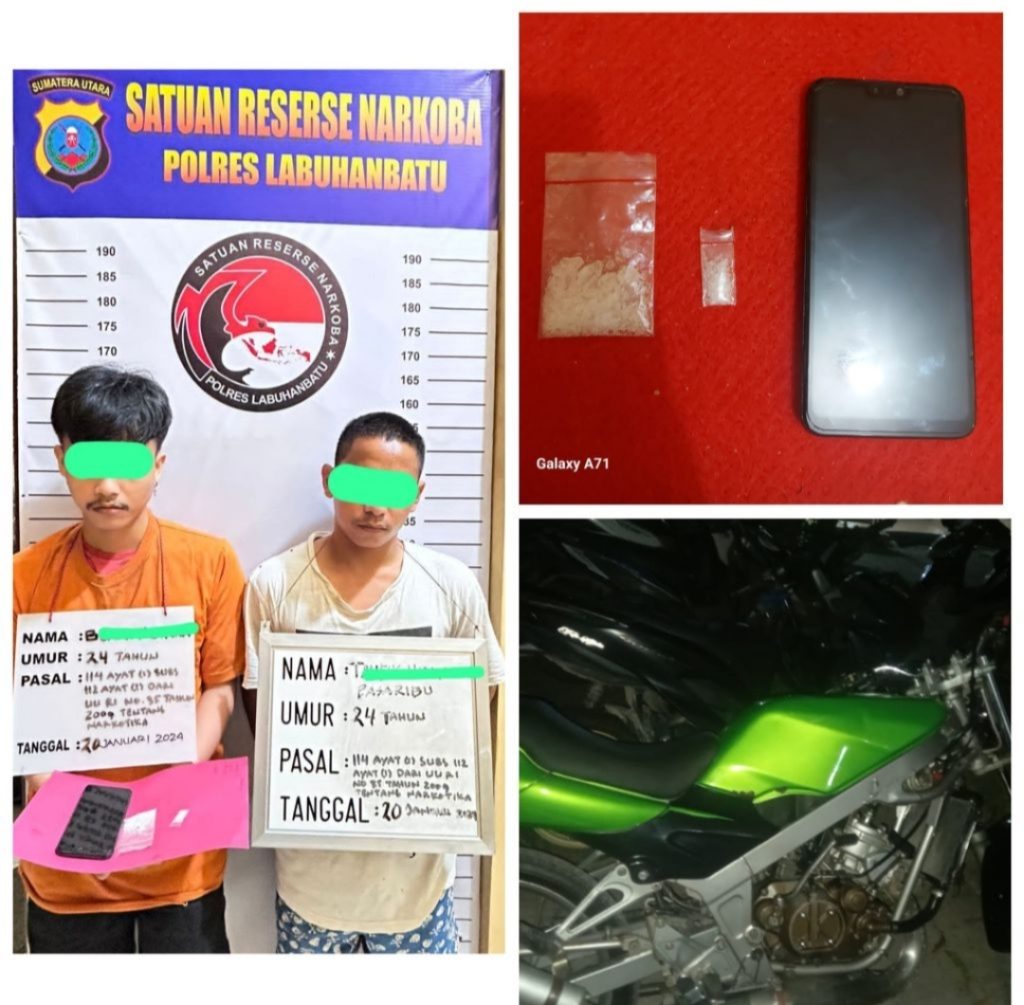 Nekat jual narkotika jenis sabu dikampung orang yakni Jalan Aek Paing Kecamatan Rantau Utara, dua pria berinisial THD alias Taufik (24) warga jalan MH Thamrin Rantauprapat dan BVBS alias Bona (24) warga Jalan Agus Salim Kecamatan Rantau Utara diciduk Tim Opsnal Satres Narkoba Polres Labuhanbatu Senin (29/1/2024).
